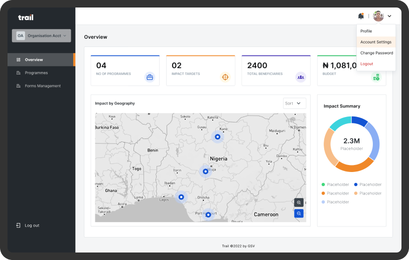 Trail was built for Private (Corporates), Public (Government Entities) and Third Sector (Mission-driven/Social Impact) Organizations. The solution is adaptable for business operations, project and program performance tracking across these target market.